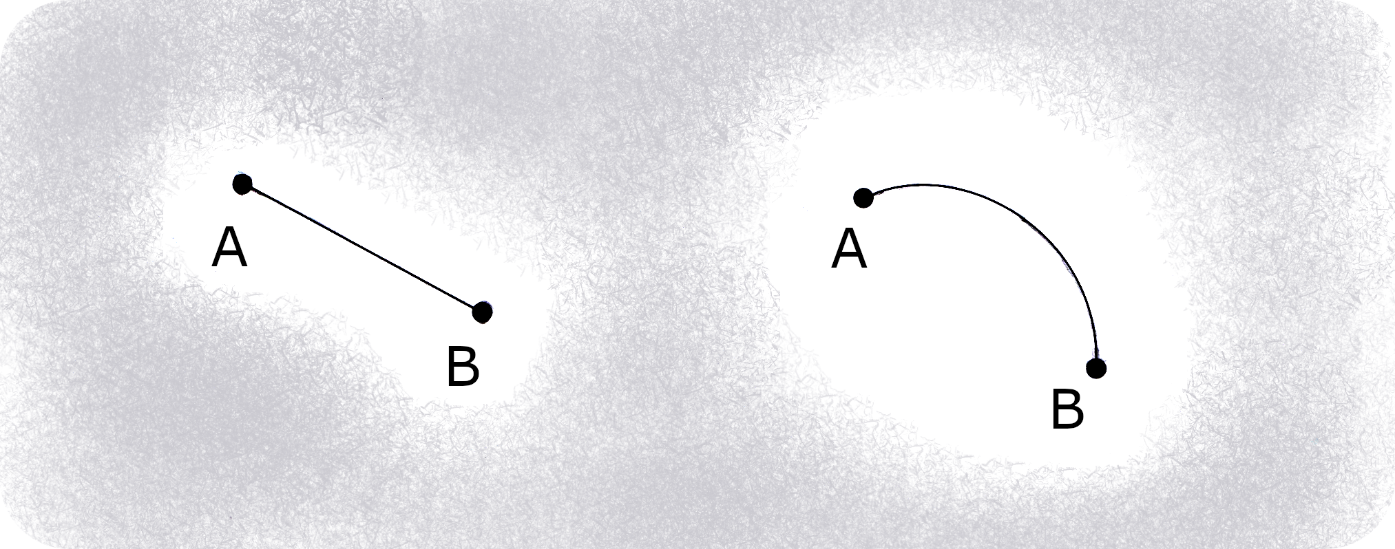 Hierzu wieder eine kleine Betrachtungsübung. Schauen Sie das einfache Bild mit den zwei verbundenen Punkten an und zwar mit der Frage: "Bei welcher der beiden Darstellungen wirken die Punkte mehr verbunden? (Skizze: Autor) |