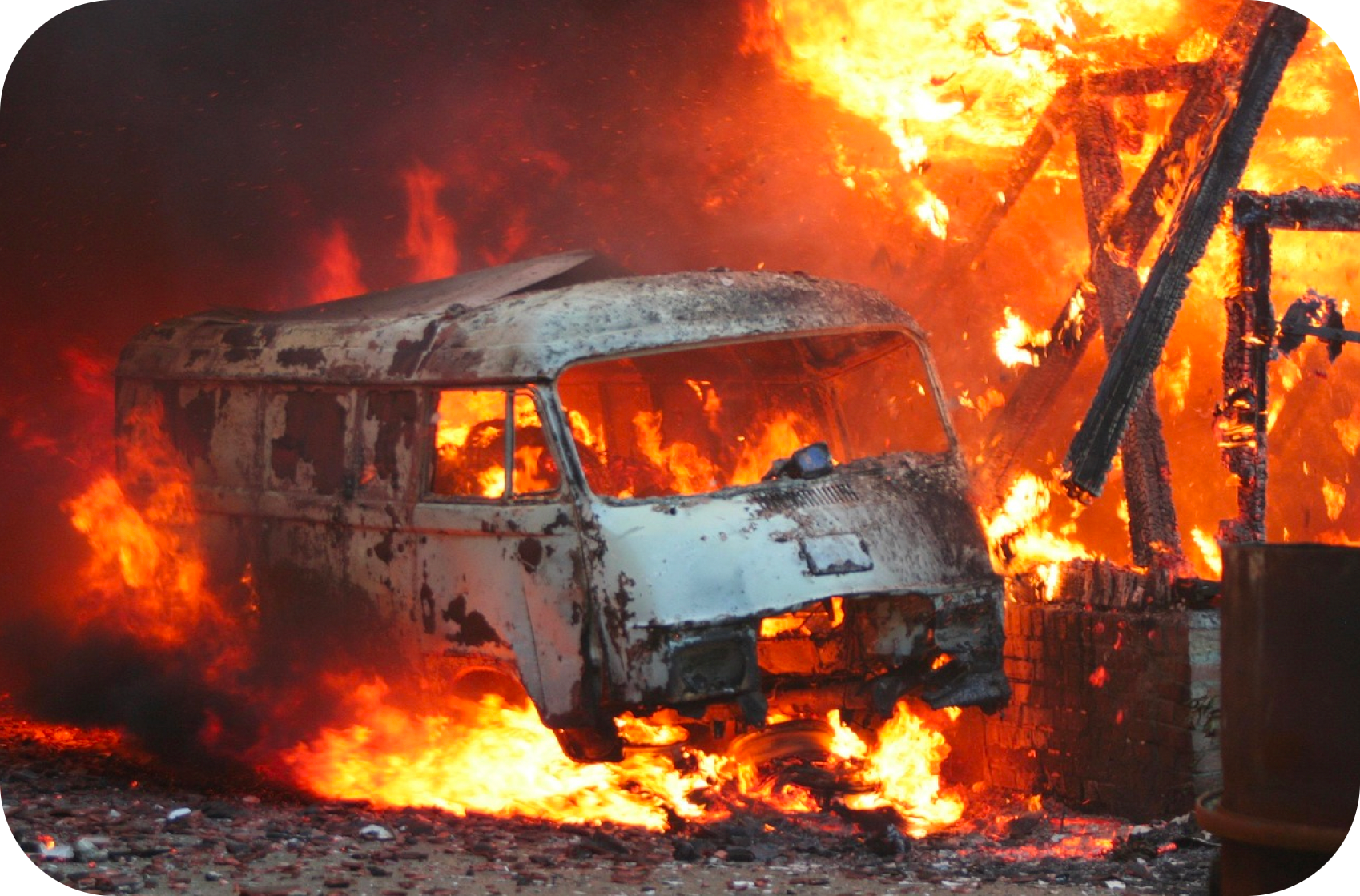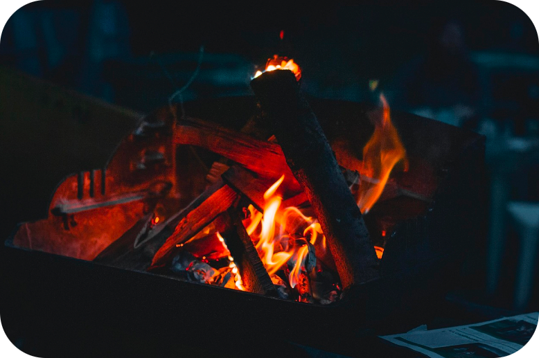 Ob als behagliches Kaminfeuer (links), oder als alles zerstörender Brand (rechts), meistens verbinden wir mit dem Begriff der äußeren oder auch physikalischen Wärme auch das Auftreten als rötlich-gelbe, manchmal auch beunruhigend flackernde Flamme oder den Vorgang des Verbrennens. Das Feuer brennt von der Materie ausgehend nach oben und außen und die Flamme und die Verbrennungsprodukte verlieren sich in der Weite des Außenraumes. (Bilder: Pixabay) |