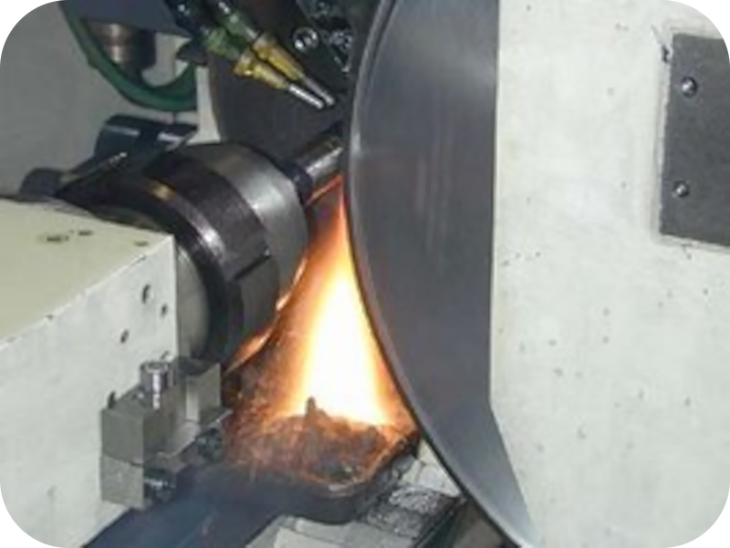 Freisetzung von Wärme bei einem Schleifprozess in der Industrie. Die Wärme ist hier für den Techniker ein lästiges oder sogar schädliches Nebenprodukt. Das Werkstück kann durch sie beschädigt werden, man bezeichnet dies als Schleifbrand. (Bild: Industriemuseum Chemnitz) |