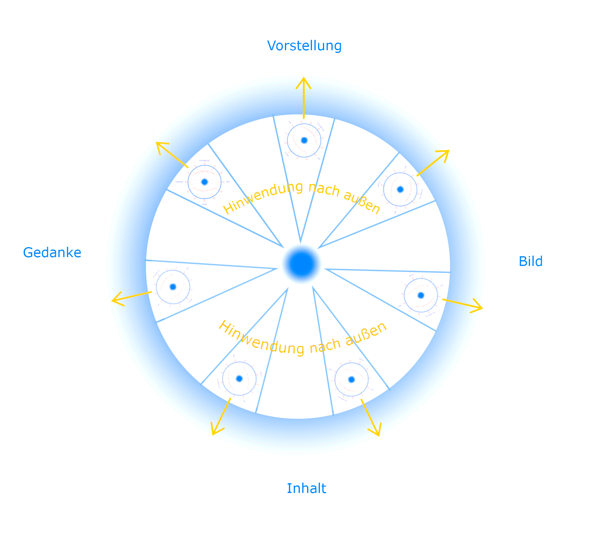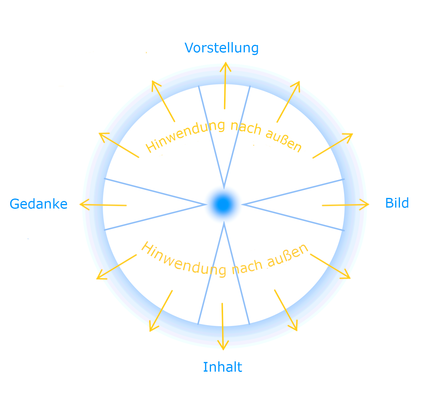 Zentrum und Umkreis 1. (Bild: Autor) Bringen wir nun die obige Beschreibung mit dem metaphysischen, das heißt, sinnlich nicht wahrnehmbaren, aber seelisch empfindbaren Wärmeäther in Verbindung, so können wir folgende Hypothese aufstellen: Die von dem Bewusstsein des Menschen geführte Aktivität entfaltet diesen Wärmeäther und er äußert sich dann für diesen Menschen und auch für seine Umgebung im Folgenden: