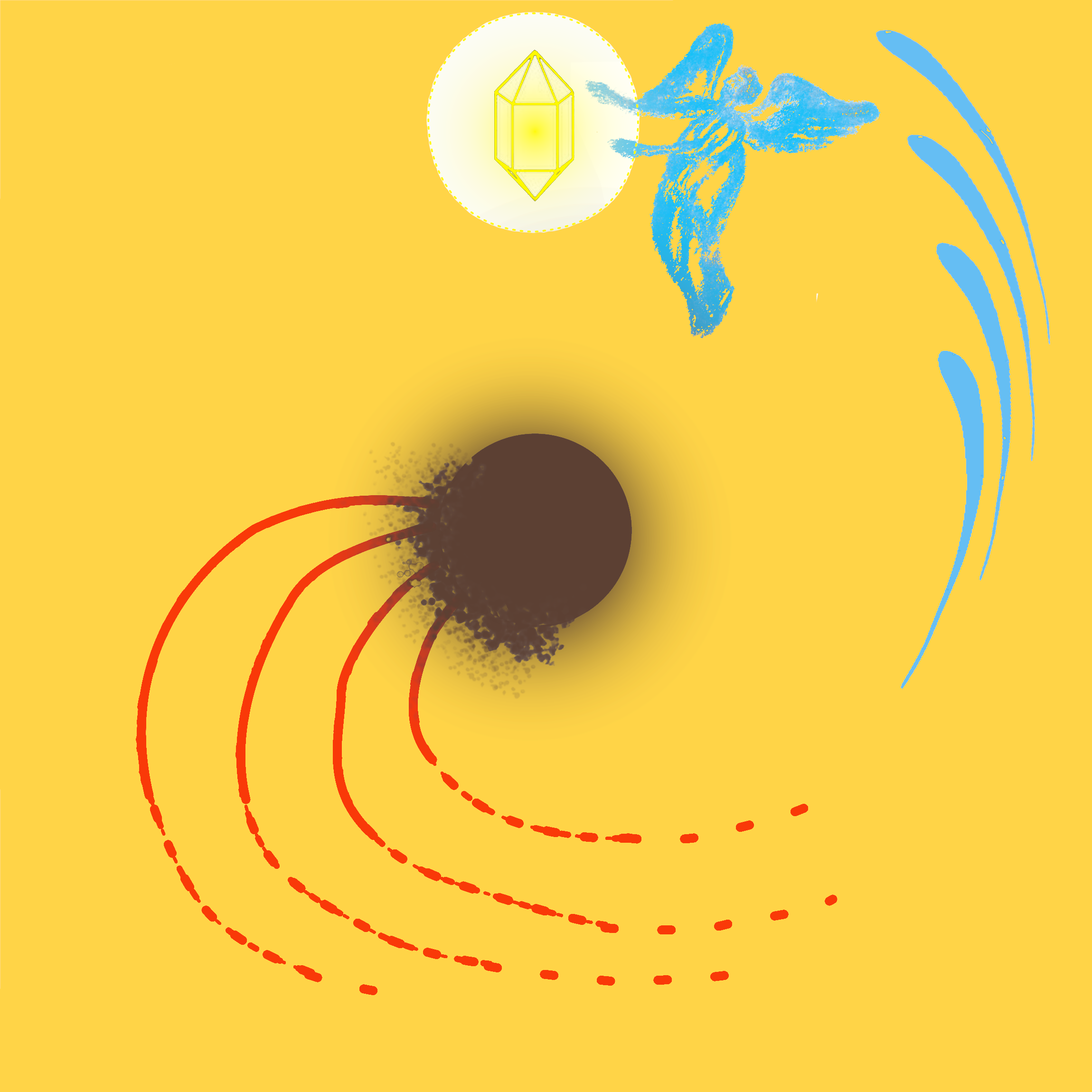 Der Wärme- oder Feueräther, Skizze aus dem Buch "Geist und Materie"3 nach der Beschreibung von Heinz Grill: "Das Feuerwesen besitzt die Eigenschaft, alle Stoffe des Erdenraums von außen nach innen zu durchdringen. Es bildet deshalb ein Ganzes und kreiert Kreisformen aus." |
