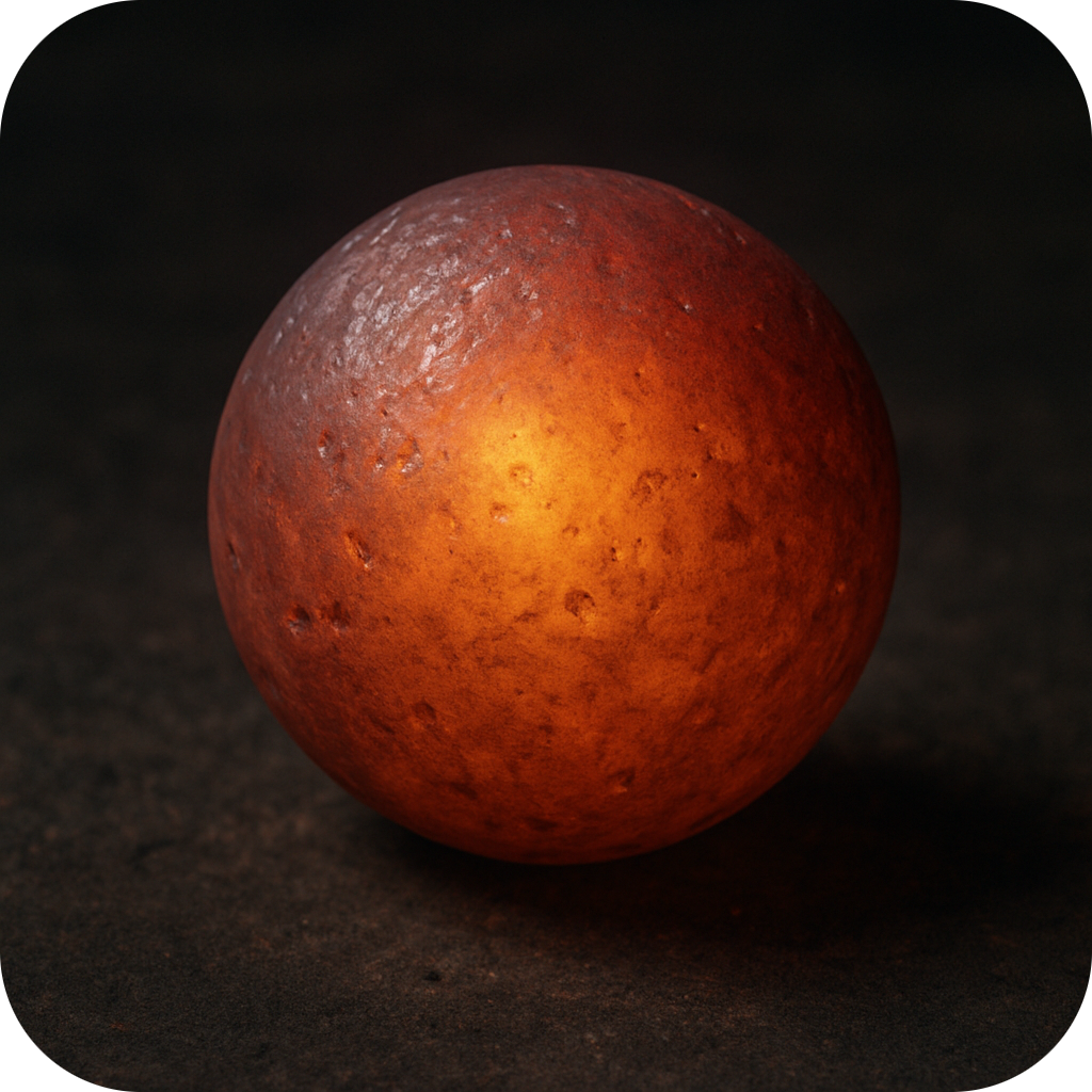 Eine glühende Eisenkugel auf einem feuerfesten Untergrund. Sie gibt ihre Wärmeenergie an die kühlere Umgebung ab, die sich ihrerseits erwärmt. Nun stellen wir uns einmal vor: Weitere Wärmeenergie strömt aus der Umgebung der Kugel zu, diese wird noch heißer und hellglühender, während die Umgebung weiter abkühlt! (Bild: KI) |