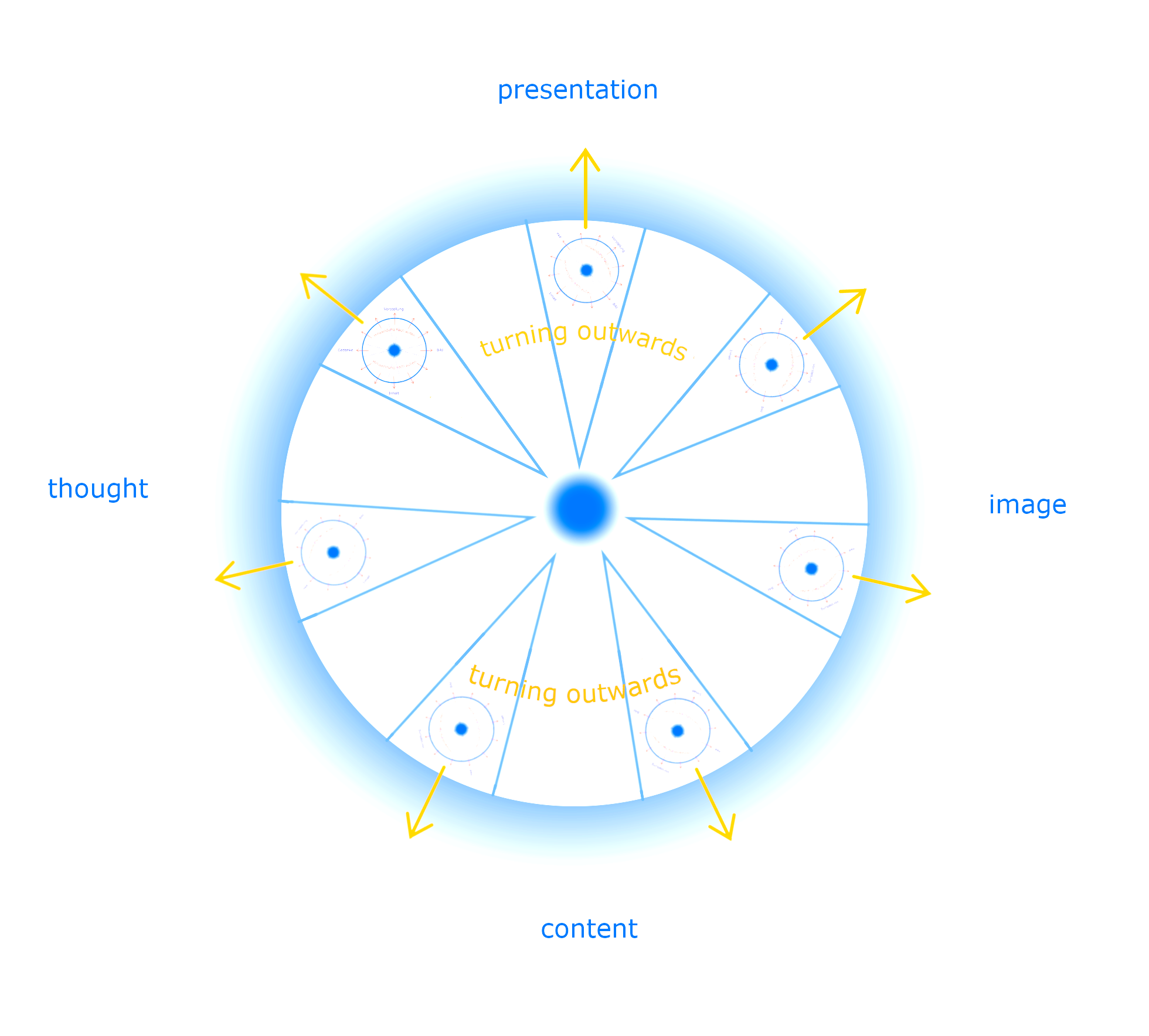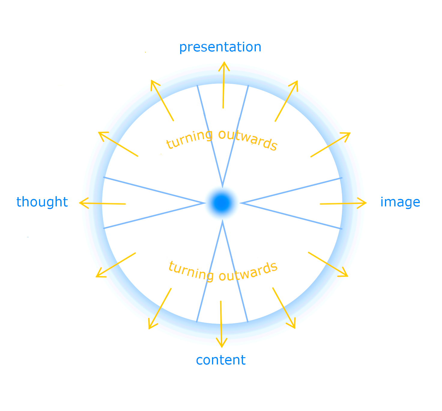 Center and periphery 2. (Image: Author) When several people work together on a project, a topic, or even the development of a yoga pose, starting from a freely held notion, idea, or thought and implementing it in collaboration, the idea in the free periphery gives rise not only to a sense of centering among the individual contributors, but also to an overarching center of the common cause. |