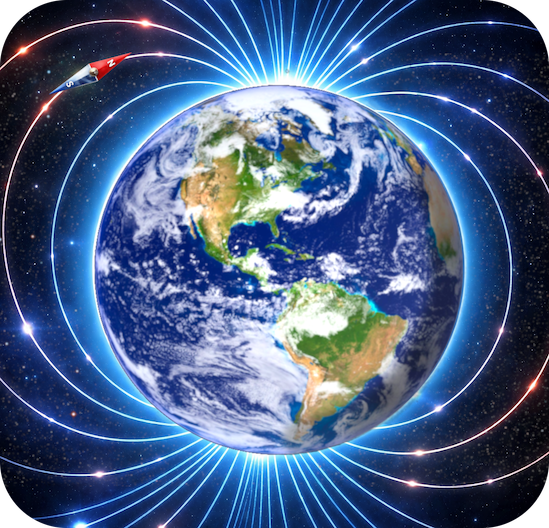 Die Lage einer gedachten Kompassnadel im kosmischen Magnetfeld der Erde als Symbol für die Orientierung des Menschen im Kosmisch-Zeitlichen. (Bild: KI)