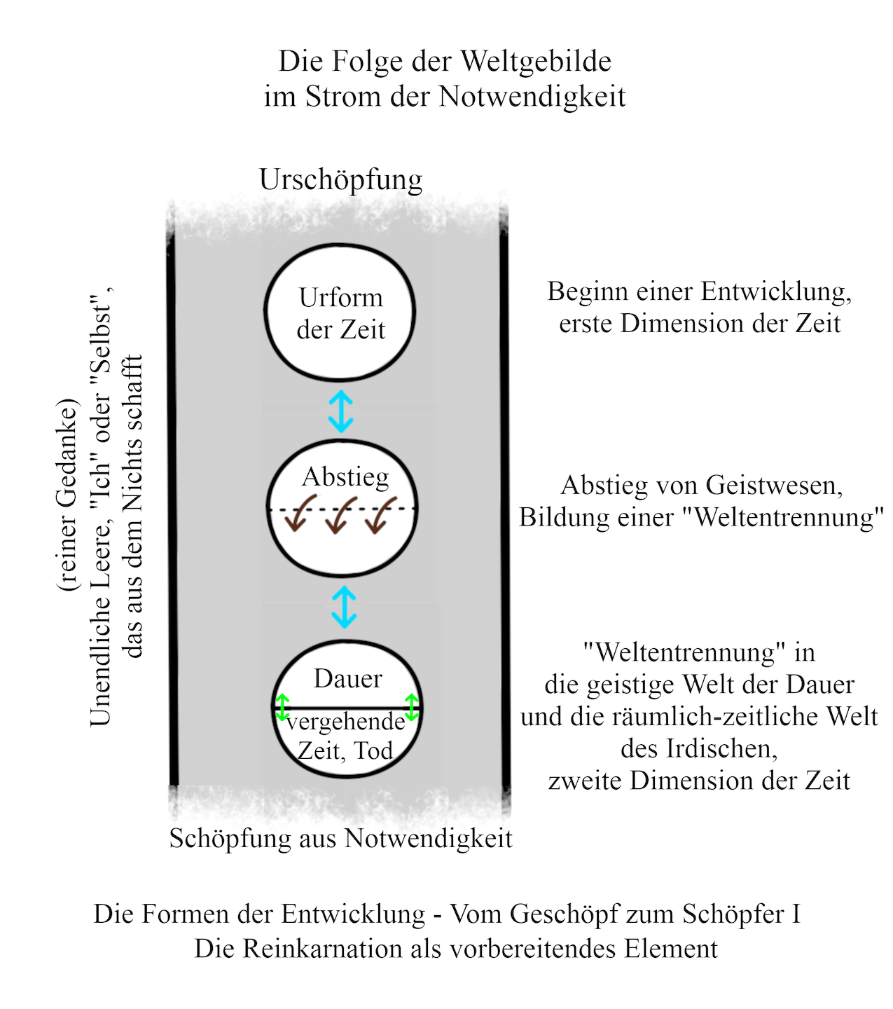 Für die weitere Betrachtung des Verhältnisses von Reinkarnation und Auferstehung stelle ich die aufeinanderfolgenden  Stufen der Weltentwicklung bezüglich des Zeitlichen schematisch dar.