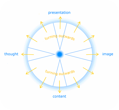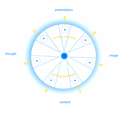 Center and periphery 2. (Image: Author) When several people work together on a project, a topic, or even the development of a yoga pose, starting from a freely held notion, idea, or thought and implementing it in collaboration, the idea in the free periphery gives rise not only to a sense of centering among the individual contributors, but also to an overarching center of the common cause.